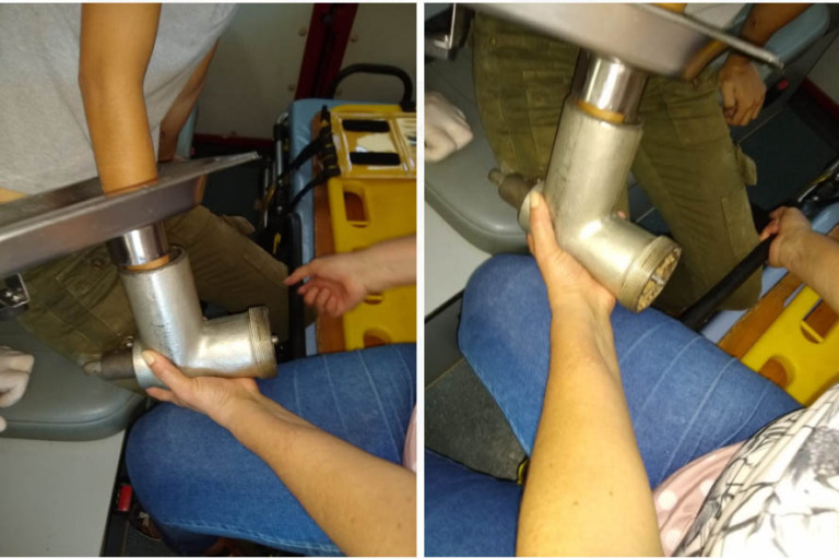 De acordo com os militares, a vítima estava consciente e recebeu os primeiros socorros no local. Entretanto, precisou ser levada com o aparelho preso na mão. Ela será submetida a uma cirurgia e deu entrada no centro cirúrgico por volta das 11h15.
