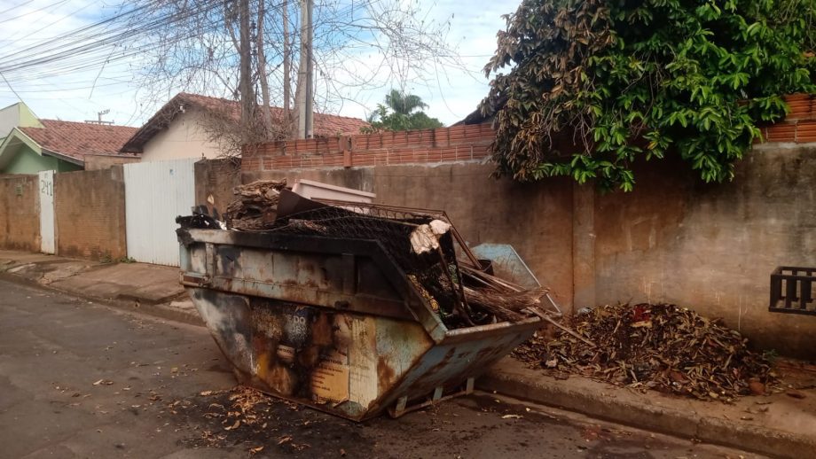 A Prefeitura de Três Lagoas informou que uma caçamba de lixo utilizada no ‘Mutirão de Limpeza’, da Secretaria Municipal de Saúde (SMS), foi incendiada de forma proposital na tarde desta terça-feira (28), no bairro Vila Piloto. A situação gerou preocupação entre moradores da região, devido ao risco de propagação do fogo para residências e veículos próximos.