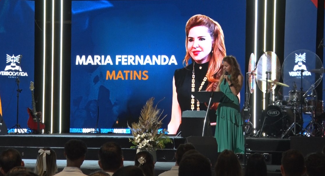 Ao final da cerimônia, Maria Fernanda emocionou os presentes ao cantar trechos da música “Força Estranha”, de Caetano Veloso, como forma de agradecimento aos formandos.