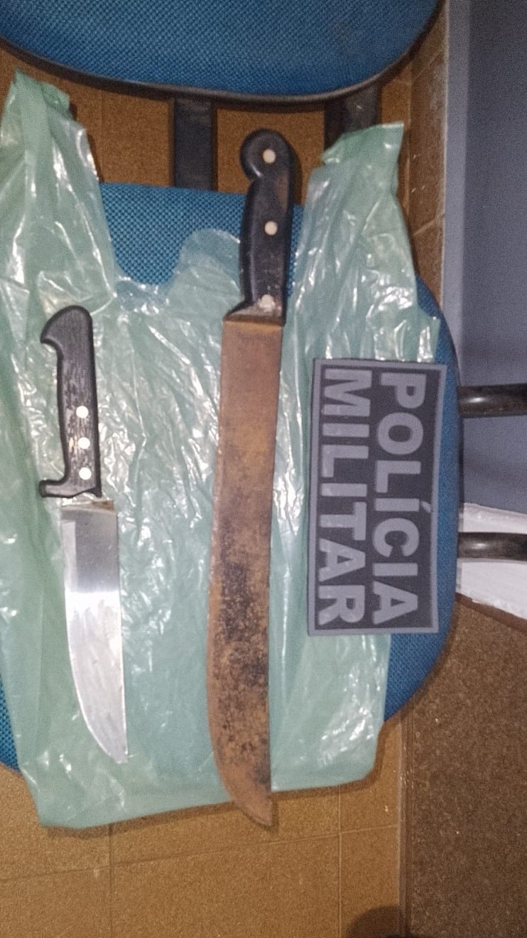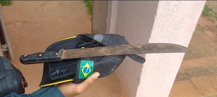 No entanto, durante busca no veículo utilizado pelo autor, os policiais encontraram uma faca com lâmina de aproximadamente 34 centímetros, que teria sido utilizada na ameaça.A vítima confirmou que o objeto foi usado para intimidá-la e que o agressor também teria danificado a residência antes de fugir.
