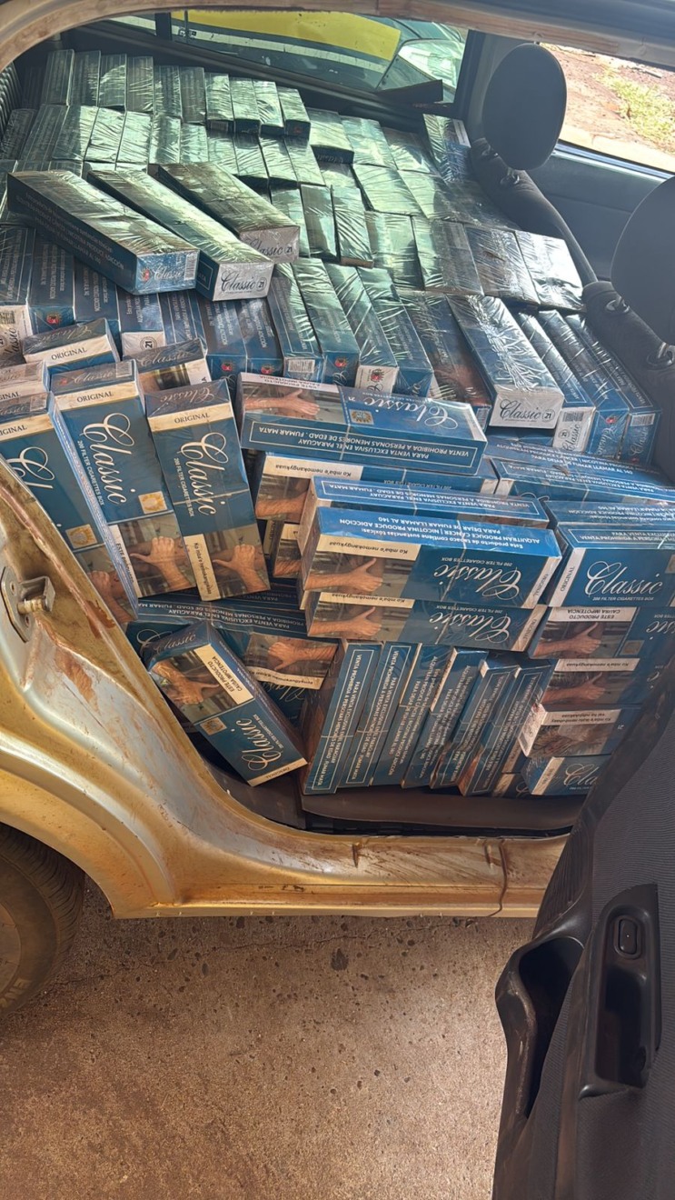 Dentro do carro, foram encontrados os agrotóxicos e a carga de cigarros contrabandeados. O veículo e as mercadorias foram encaminhados à Receita Federal para os procedimentos legais.