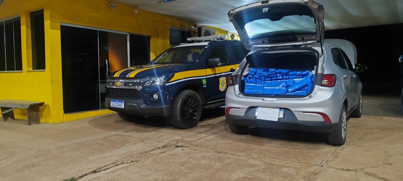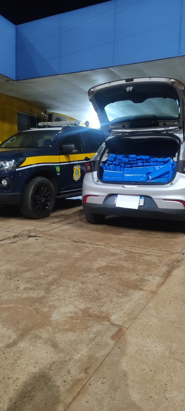 A Polícia Rodoviária Federal (PRF) apreendeu 318 quilos de maconha e prendeu um homem com mandado de prisão em aberto, nesta terça-feira (28), em Água Clara. O suspeito transportava a droga em um Fiat Argo furtado em São Paulo.