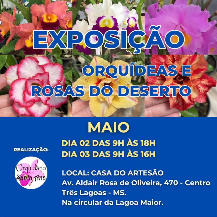 Na sexta (2) e sábado (3), acontecerá a Exposição de Orquídeas e Rosas do Deserto, na Casa do Artesão, evento voltado para os amantes da natureza.