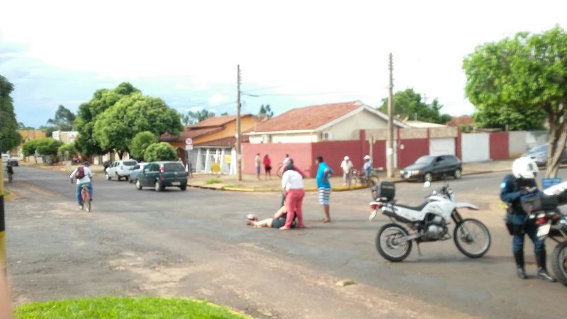 Uma moto atravessou a avenida Capitão Olyntho Mancini e foi atingida por um carro Renault Duster, na tarde desta quarta-feira, dia 6, no Jardim Alvorada, em Três Lagoas.