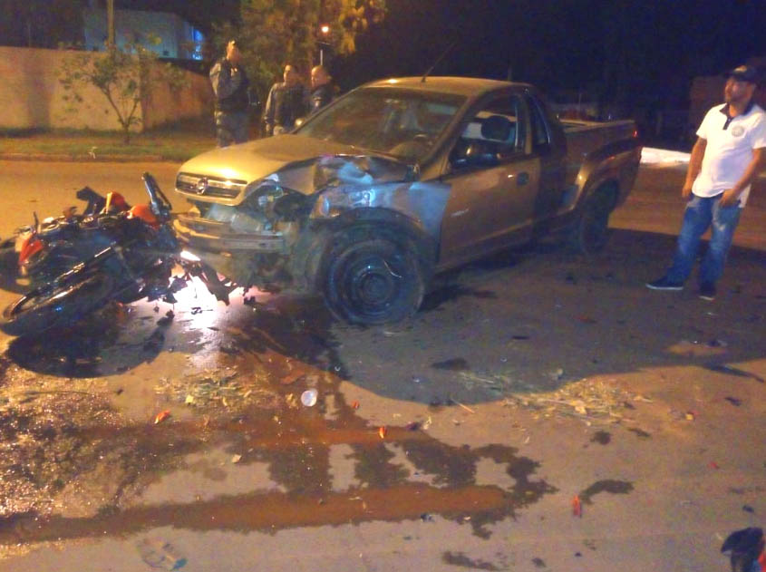 Uma motociclista de 29 anos ficou gravemente ferida após a moto que pilotava atingir uma picape na avenida Capitão Olinto Mancini, no bairro Jardim Alvorada, nesta madrugada (15), em Três Lagoas. O motorista estaria embriagado, segundo boletim de ocorrência e foi preso em flagrante. A vítima foi atendida por equipe do Serviço de Atendimento Médico de Urgência (Samu), por volta das 4h.