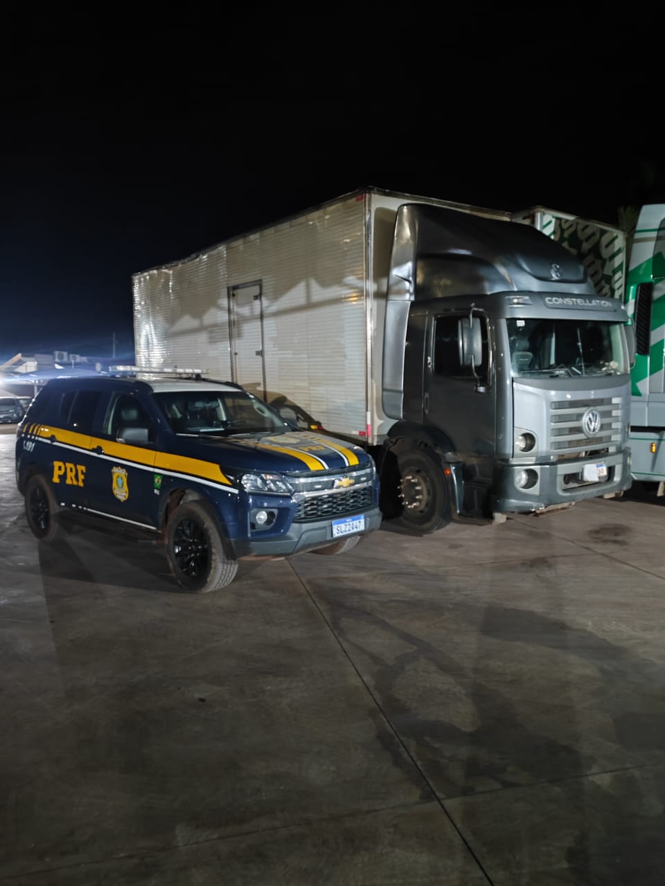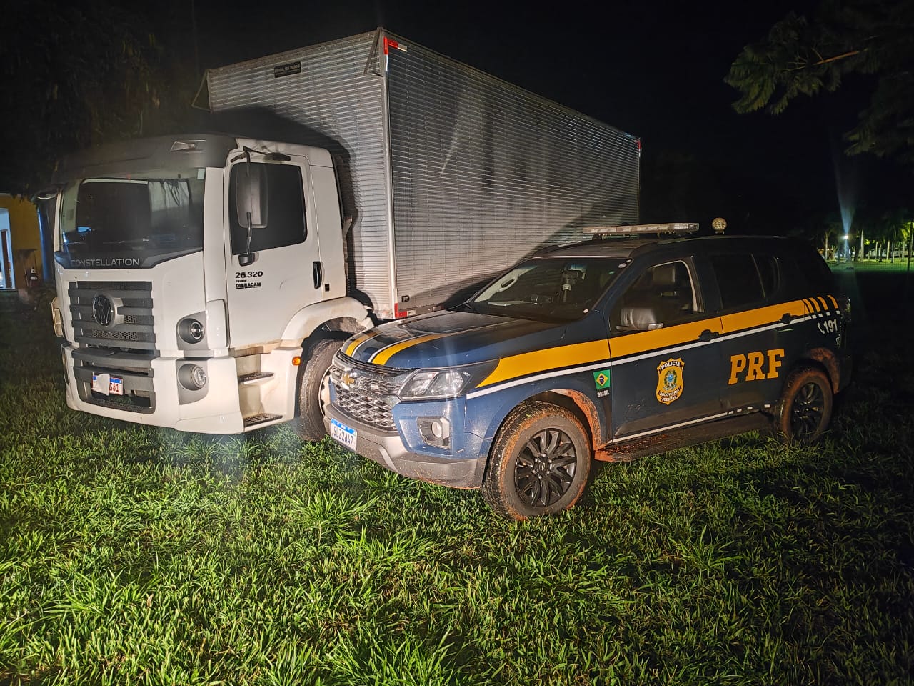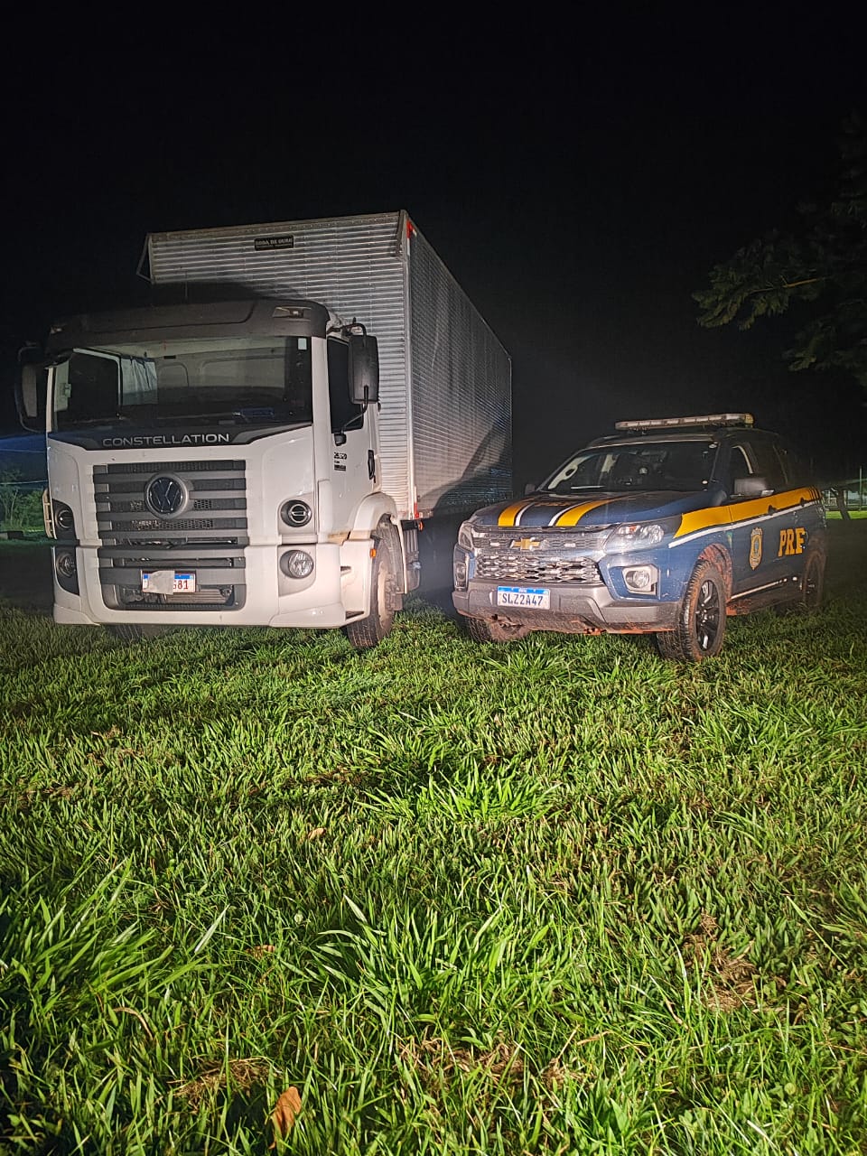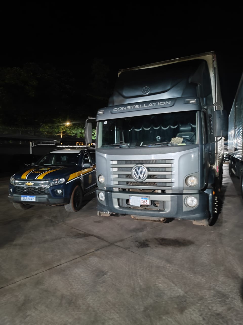 Durante abordagem a um caminhão VW/24.260, com placas de Jardim (MS), os policiais constataram que a carroceria fechada estava totalmente carregada com produtos diversos de provável procedência estrangeira, sem a devida documentação fiscal. Entre os itens apreendidos estavam cosméticos, óculos, relógios, peças de vestuário e pneus.