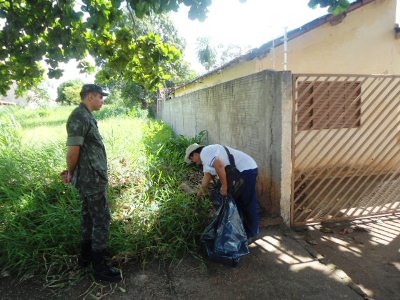 Acompanhados de, ao menos, um dos moradores da casa, as equipes, com o apoio e também participação dos soldados do Exército, estão localizando e recolhendo todos os criadouros, ou seja, tudo o que possa armazenar água.
