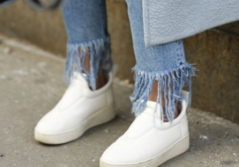 Quer sair mesmo do comum? Crie um jeans com barra desigual. Aparecendo com frequência na moda de rua, a ideia é cortar a parte da frente da calça para que ela fique mais curta que a de trás. Fácil, prático e fashion!