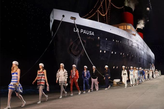 O poder de Lagerfeld entra em cena no momento em que ele passa a levar suas clientes, alguns influenciadores digitais e editoras de revistas ao redor do mundo para diferentes destinos no intuito de exibir as suas propostas para a pré-temporada. Ontem (3,5), o designer fugiu de Havana, Seul ou Hamburgo. Ali mesmo, em Paris, ele fez com que seus convidados viajassem sem sair do lugar. Como? O cenário do desfile era nada menos que um navio gigantesco!