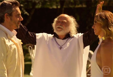 Romero (Alexandre Nero) e Atena (Giovanna Antonelli) se casaram na casa de campo em Araras (interior de São Paulo). Elegantes eles se vestiram de branco e trocaram juras de amor diante de Ascânio (Tonico Pereira), que atacou de juiz de paz.