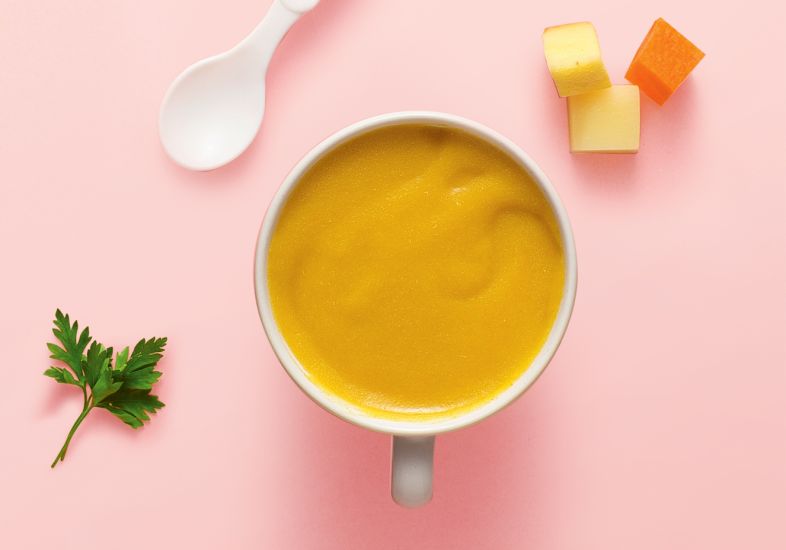 Falamos de peixes, frango e carne vermelha (cortes magros, como o músculo). Até os 8 meses, cozinhe essas carnes só para dar um caldo proteico e um gostinho extra.