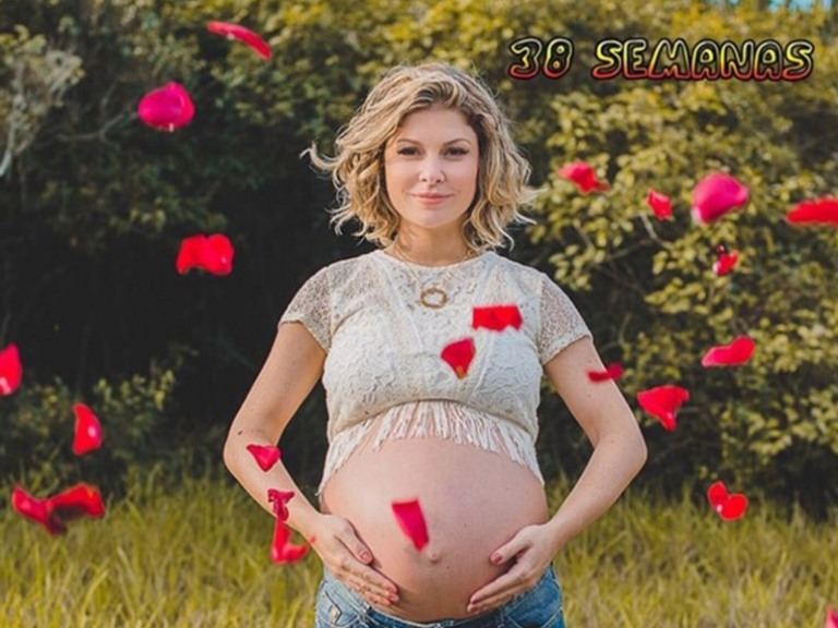 A atriz, que está à espera de seu segundo filho, aparece de top e segurando a barrihuinha. Na imagem, ela ainda aplicou um textinho relevando as 38 semanas de gestação. "'O melhor presente de Deus vem sempre na embalagem certa'. Foto: @milisboafoto #38semanas #maedobem #maternidade #maternidadecomamor #tachegandoahora", escreveu a atriz.