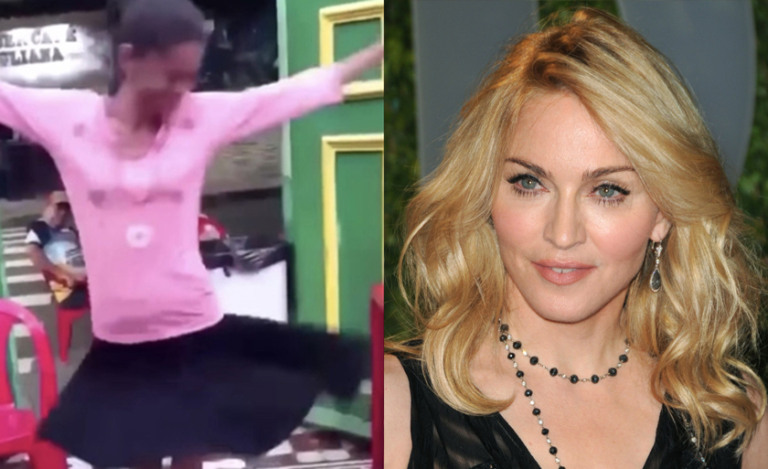 Dedicando o momento ao filho, ela reproduz uma coreografia bastante parecida com a que a rainha do pop, uma então iniciante, executa no clipe oficial da faixa, lançado em 1983. Ao fundo, alguém grita “Vai, Dona Marina”.