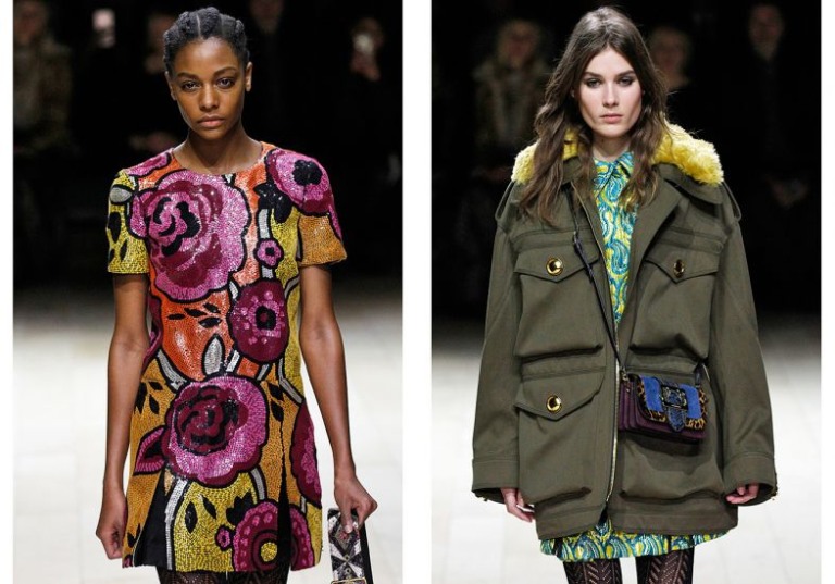 Na passarela, nenhum trench-coat clássico deu as caras. No lugar deles, casacos exuberantes deram o tom pop funny do desfile que misturou referências românticas a elementos militares de vibe setentinha. Alguns com print colorido de píton, outros com pelo colorido na gola e todos sobre vestidos igualmente cheios de informação, num styling que chega a lembrar algumas apresentações da italiana Miu Miu.