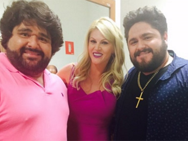 "Encontrei com o César Menotti e o Fabiano! Adoro as músicas deles e principalmente a simpatia e a educação deles! Meus conterrâneos do Paraná, que dominaram o Brasil! Mas posso falar? O César me colocou em uma saia justa… Ele disse, que quando éramos jovens, quando eu não era riquinha ainda, lá no interior do Paraná, a gente deu um selinho, em uma balada… Hello! Nem me lembrava disso! Ele disse que foi só um beijinho, bem rápido, mas se lembrava, porque foi marcante para ele! Adorei!", diverte-se a socialite.