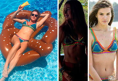 O biquíni queridinho das famosas no momento é o de cores vibrantes com detalhes em crochê. A marca Kiini, de Nova York, lançou algumas versões da peça em 2014, que conta com sutiã em forma triangular e calcinha sem lacinho lateral. Em julho do ano passado, um modelo da marca brasileira MarleyClub chamou atenção das telespectadoras no corpo de Camila Queiroz, em “Verdades Secretas”. Inspire-se: