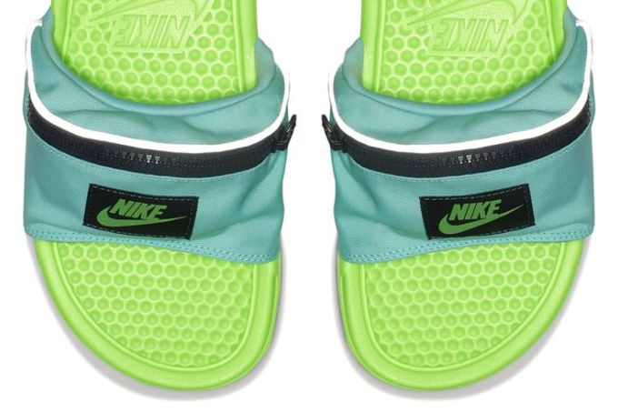 Nos últimos anos, a moda resgatou dois elementos esquecidos do nosso guarda-roupas: a pochete e as sandálias de tira grossa. Agora, em uma união improvável, a Nike uniu os dois elementos no “Benassi slides”, uma sandália de tira grossa que… tem bolsinhos embutidos! Como uma pochete nos pés, mesmo.