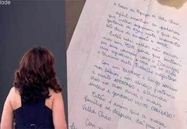 O texto foi lido no programa Encontro com Fátima Bernardes desta sexta-feira (30), quando o tema escolhido foi saudade e homenageou Montagner. Junto à carta, havia uma rosa branca.Confira o texto da carta: