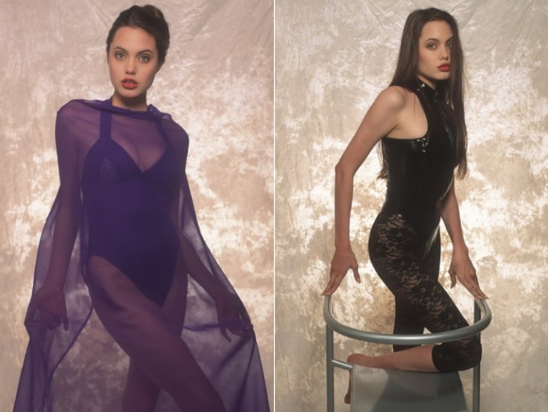 Nas imagens de 1991, Jolie já aparece com boca carnuda, uma de suas marcas registradas, além do corpo cheio de curvas, algo bem diferente do corpo de agora, que já foi até criticado por estar muito magro.