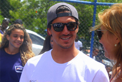Mal chegou no local, e o ídolo do esporte já começou a exibir sua jáconhecida simpatia, para quem estivesse ao seu redor, e foi recebido, com muito carinho e atenção, por Roberta Rodrigues e Thiago Martins, que são padrinhos do projeto, em uma das quadras esportivas da comunidade.