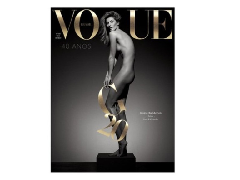 Eis aqui a mais aguardada capa da Vogue Brasil de 2015: Gisele Bündchen é nossa em maio, e aparece em cinco editoriais exclusivos distribuídos em 80 páginas da revista, que começa a chegar às bancas a partir da quinta-feira (30.04). Nua na capa, a top foi clicada pela renomada dupla de fotógrafos Inez Van Lamsweerde e Vinoodh Matadin.