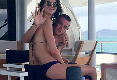 Em uma das fotos, tiradas durante as férias de dezembro em St. Barts, Kendall está de biquíni, sentada no colo do artista.