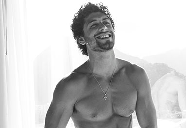 Coberto apenas por uma toalha branca, o modelo e DJ abusou da criatividade na hora de escolher as poses que mais iriam favorecer sua boa forma, que, aliás, foi exibida, quase que por inteiro, na frente das câmeras do renomado fotógrafo Beto Gatti.