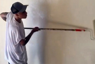 E na última terça-feira (13), o cantor passou a tarde pintando paredes.