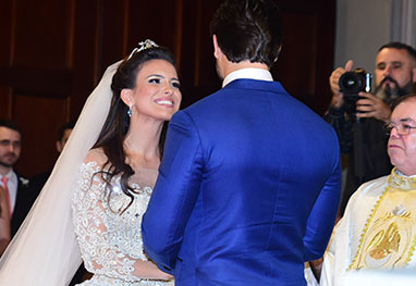 Os dois ex-BBB receberam cerca de 250 convidados e Eliéser não conteve as lágrimas ao ver a noiva chegar. Depois foi a noiva que se emocionou, na hora das alianças.