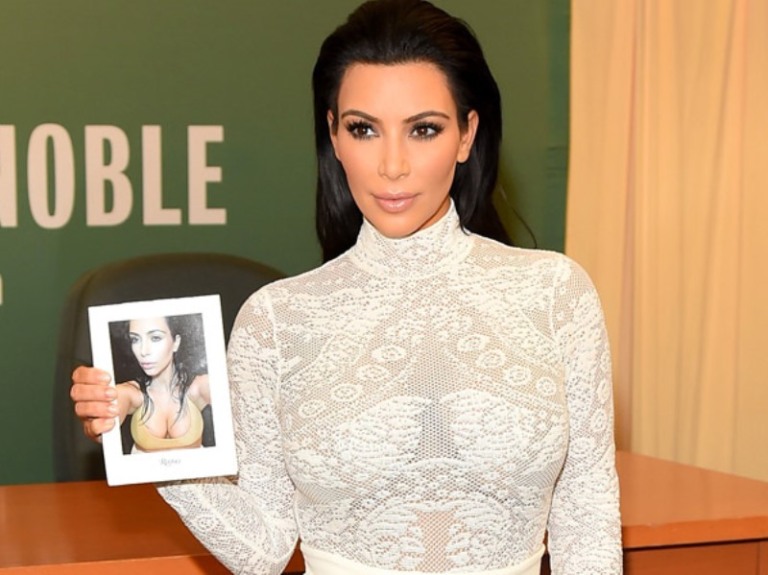 Ela usou uma blusa cheia de renda, mas dispensou o uso do sutiã, algo que acabou revelando mais do que ela gostaria. O livro lançado por Kim Kardashian, que se chama Selfish, conta só com imagens de alguns de seus mais famosos autorretratos, conhecidos como selfies.