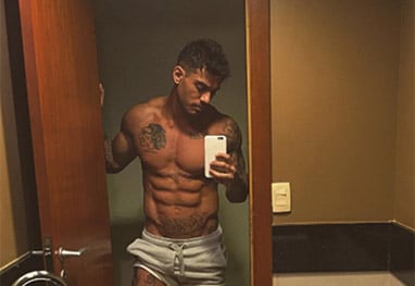 Usando apenas um short, o cantor e ator exibiu, na frente de um espelho, sua barriga sarada, muito bem trabalhada, após muito exercício físico.