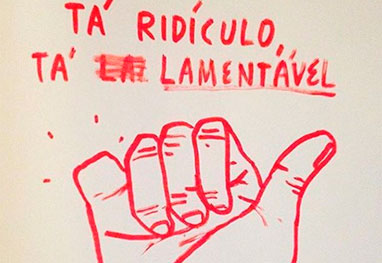 Na maioria dos protestos dos famosos, que incluem Bruno Gagliasso, Rafael Cardoso, Luciele di Camargo, Carolina Dieckmann, Paloma Bernardi, Paolla Oliveira, Nando Rodrigues, Malvino Salvador, entre outros, a imagem fazia uma alusão ao gesto da música “Tá Tranquilo, Tá Favorável”, onde se lia “Tá Ridículo, Tá Lamentável” com uma mãe sem o dedo mindinho, já que o ex-presidente perdeu tal membro em um acidente.