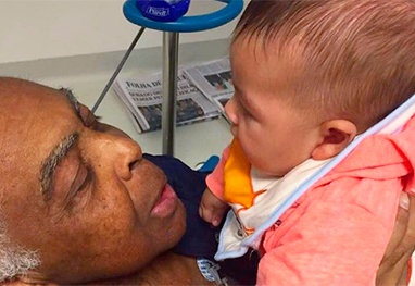 Internado no hospital Sírio-Libanês, em São Paulo, Gilberto, que está tratando uma insuficiência renal, não poderia estar mais feliz ao receber o netinho.