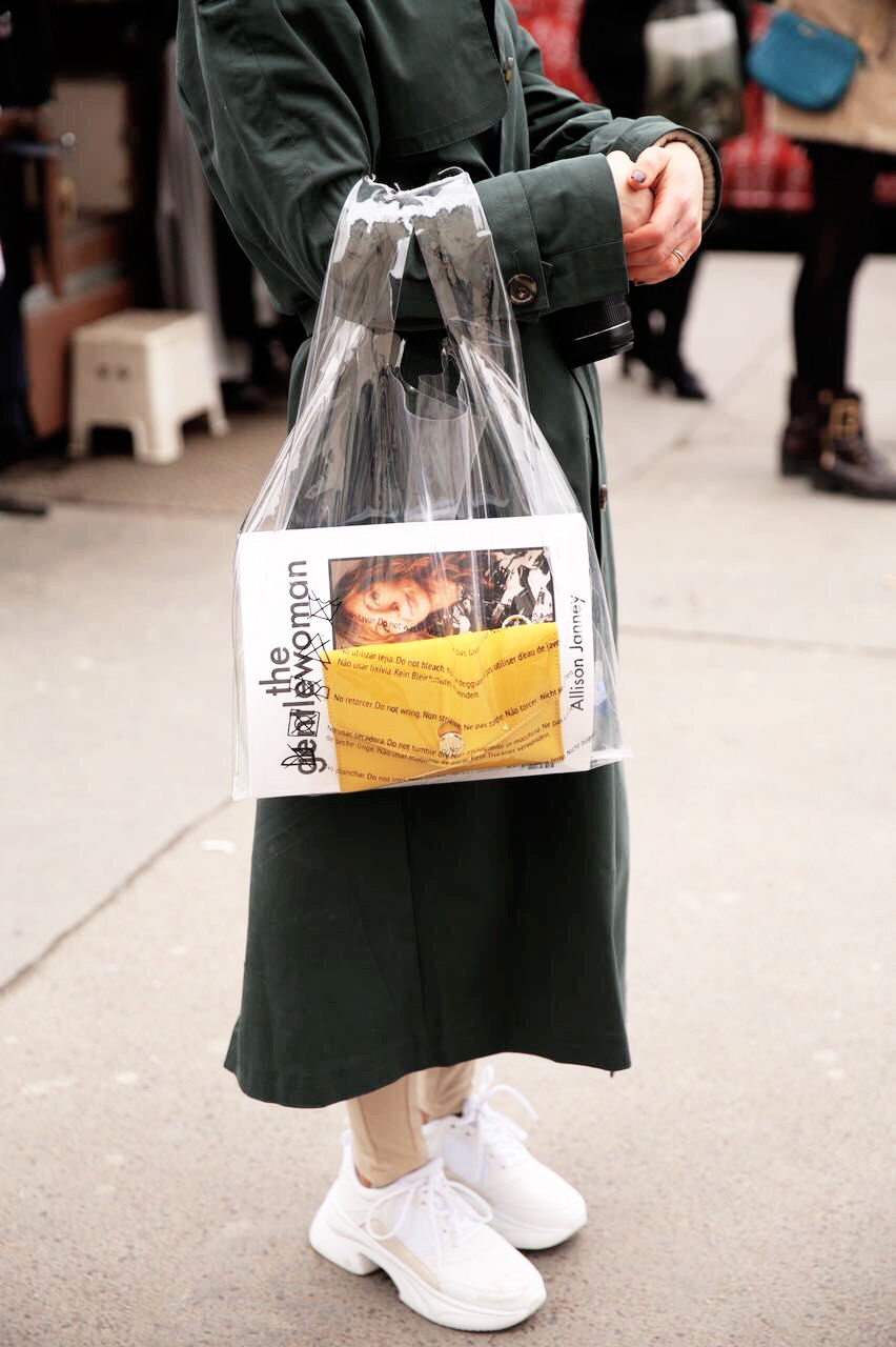 Imagine que você está na semana de moda de Paris. Passeando entre as ruas da cidade-luz abarrotadas de fashionistas que correm de um lado para o outro em busca do próximo desfile, uma figura peculiar começa a se repetir. Trata-se de uma bolsa de plástico da Céline que, apesar do material, continua a preço de luxo (por volta de US$ 600). Além dela, outro modelo fora da caixinha pipoca entre os looks: a bolsa feita com uma espécie de rede — como essas em que carregamos frutas na feira de domingo, sabe?