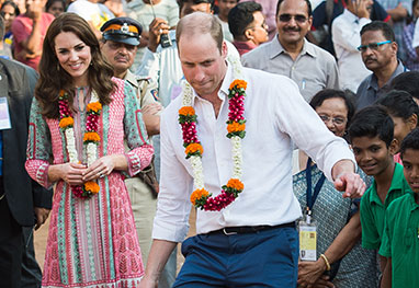 De acordo com a imprensa internacional, o casal real, que viajou sem os filhos George e Charlotte, participou de um evento de gala para caridade inspirado em Bollywood.