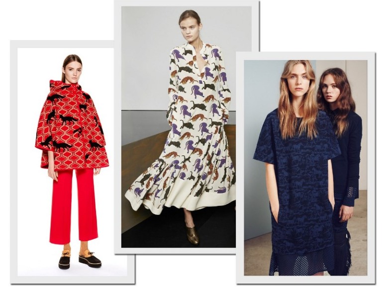 Saem as estampas corridas com motivos pequenos representando as peles dos animais, entram desenhos figurativos de gatos selvagens (Stella McCartney), cavalos (See by Chloé), borboletas (Valentino) e raposas (M Missoni), por exemplo.
