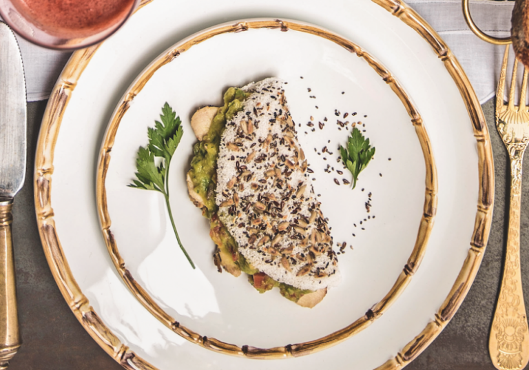 Em uma tigela, tempere o frango com as ervas, sal e pimenta-do-reino. Cubra com filme pla?stico e leve a? geladeira. Deixe marinar de um dia para o outro. Corte o frango em fatias finas e, em uma frigideira com 1 colher (sopa) de azeite, grelhe-as em fogo me?dio. Reserve. Em uma vasilha, amasse o abacate com um garfo. Junte a cebola, o tomate e o azeite restante. Tempere com sal e molho de pimenta. Misture delicadamente. Reserve. Em uma frigideira aquecida em fogo me?dio, distribua as sementes e peneire a tapioca por cima. Quando comec?ar a soltar das bordas da frigideira, tire do fogo. Recheie com o frango e a guacamole e sirva.